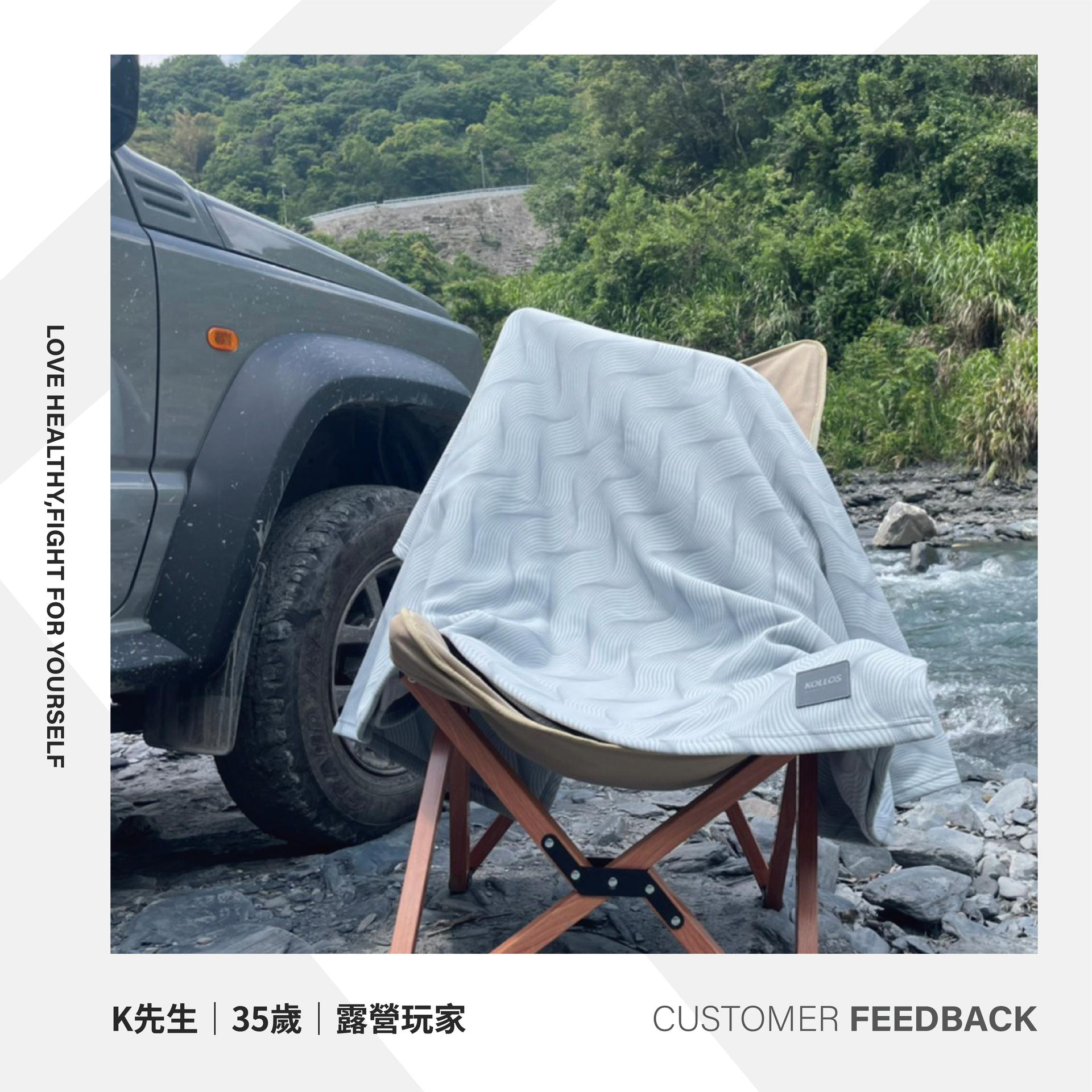 這次露營我也一起帶上最近愛用的毯子,尤其到了晚上山上的溫度開始下降,當大家聚在一起聊天時,把這毯子攤開放在雙人椅上,都暖了起來,收納起來也是完全不占空間,相信這一點對營友們來說真的大大加分,當天晚上大家都搶著想體驗一下呢!