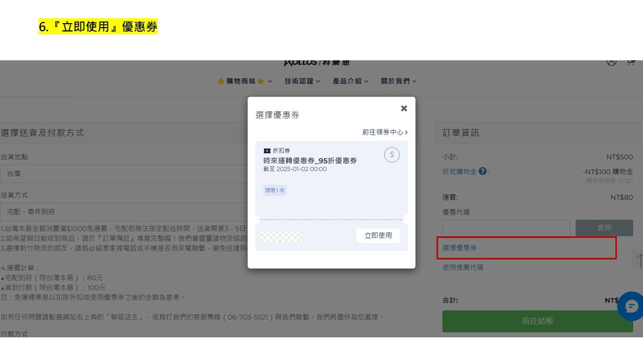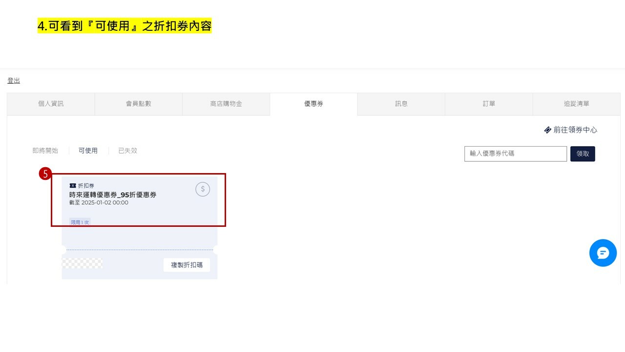 2. 每張購物金限一次性兌換使用,恕不分批使用。