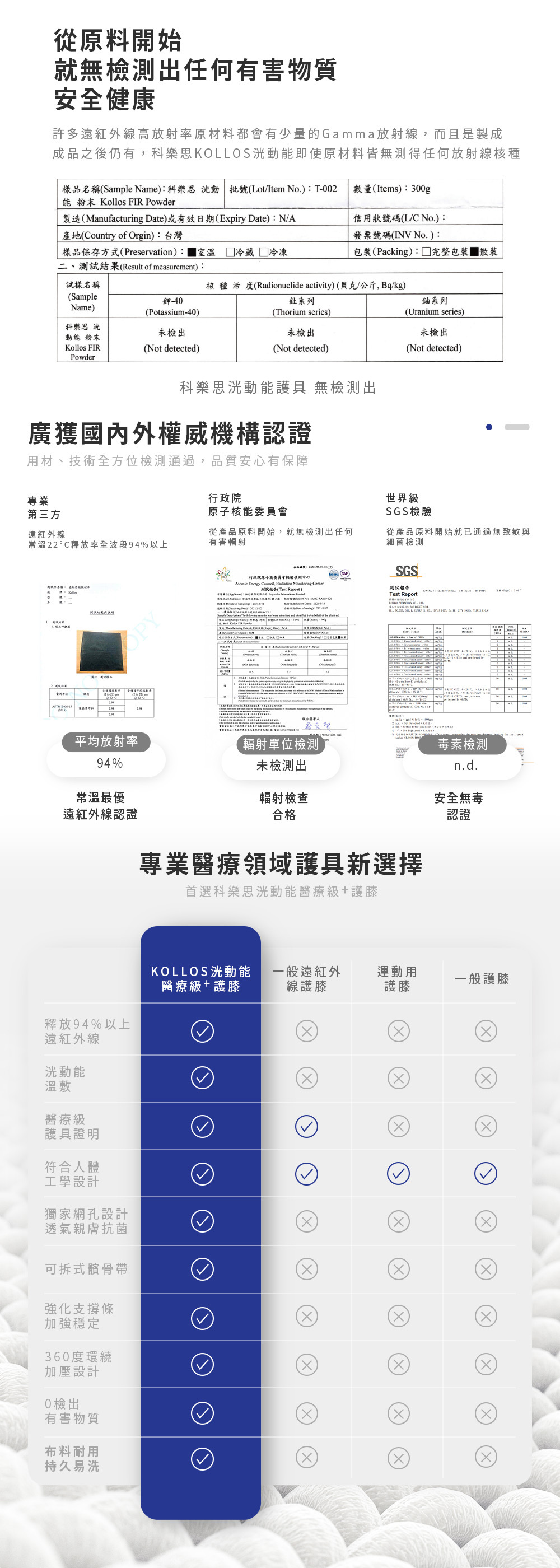 材質:遠紅外線粉末、尼龍、塑勾、氯丁橡膠、金屬支撐條